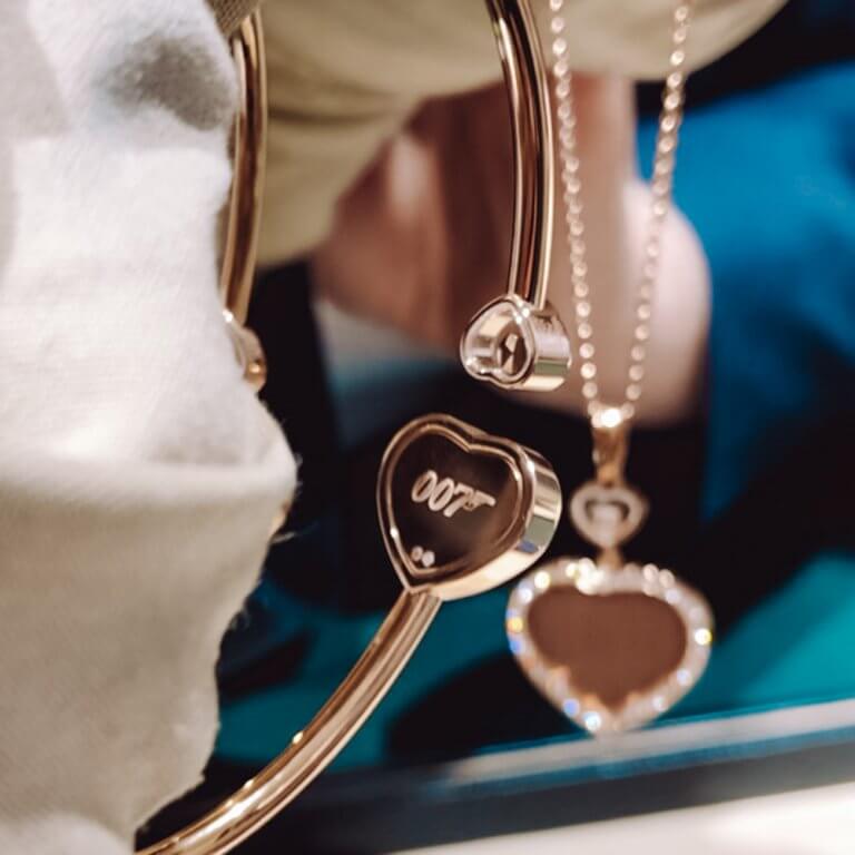 V kolekcii Happy Hearts – Golden Hearts má každý jeden náramok, náušnice čí náhrdelník na zadnej strane vygravírovaný symbol 007 – symbol, ktorým sa na celom svete označuje legendárny James Bond. Veľké zlaté srdce, ktoré môže byť osadené diamantmi po obvode, dopĺňa menšie srdce so slávnym voľne pohyblivým diamantom, ďalším znakom Chopardu ako symbolom slobody a dobrodružstva.