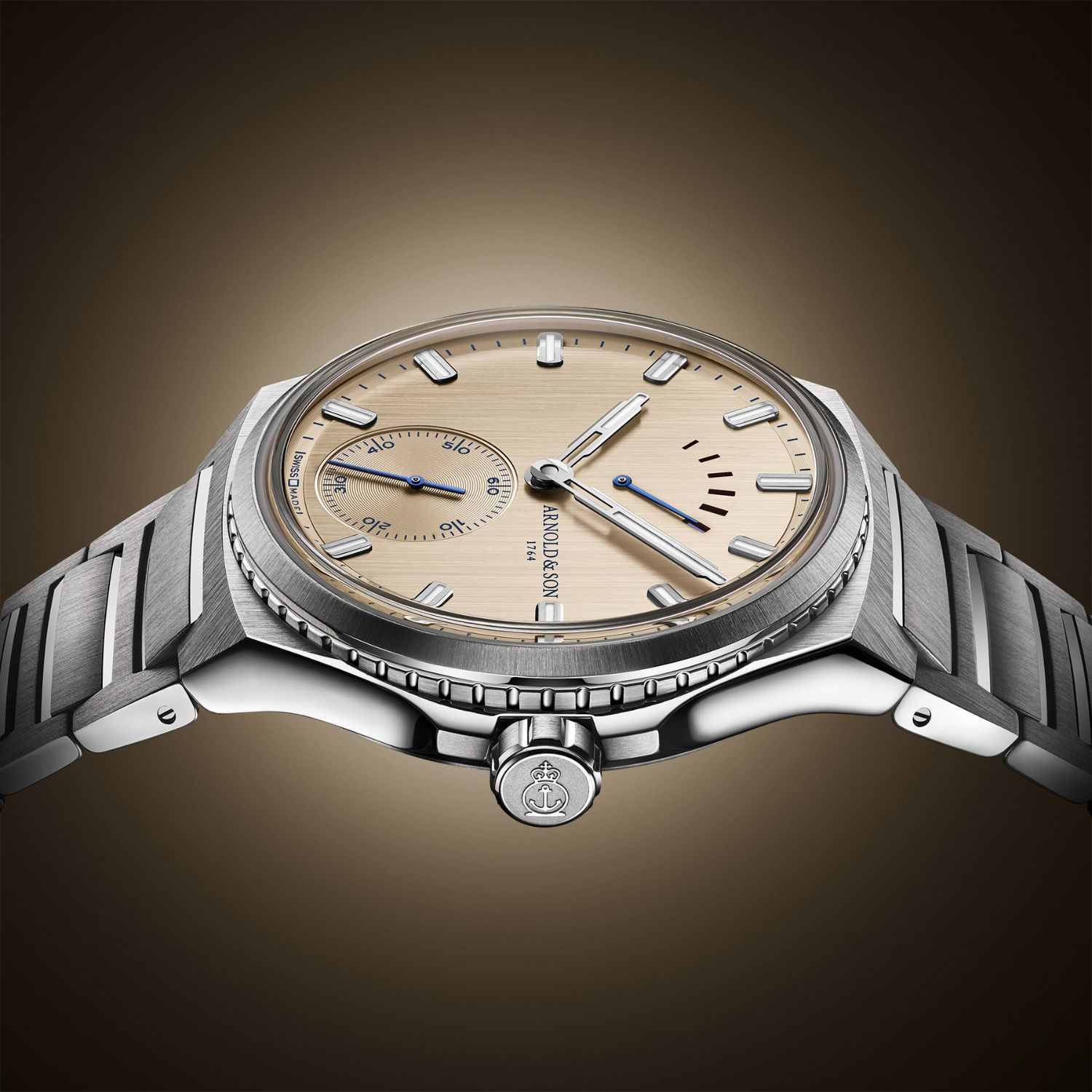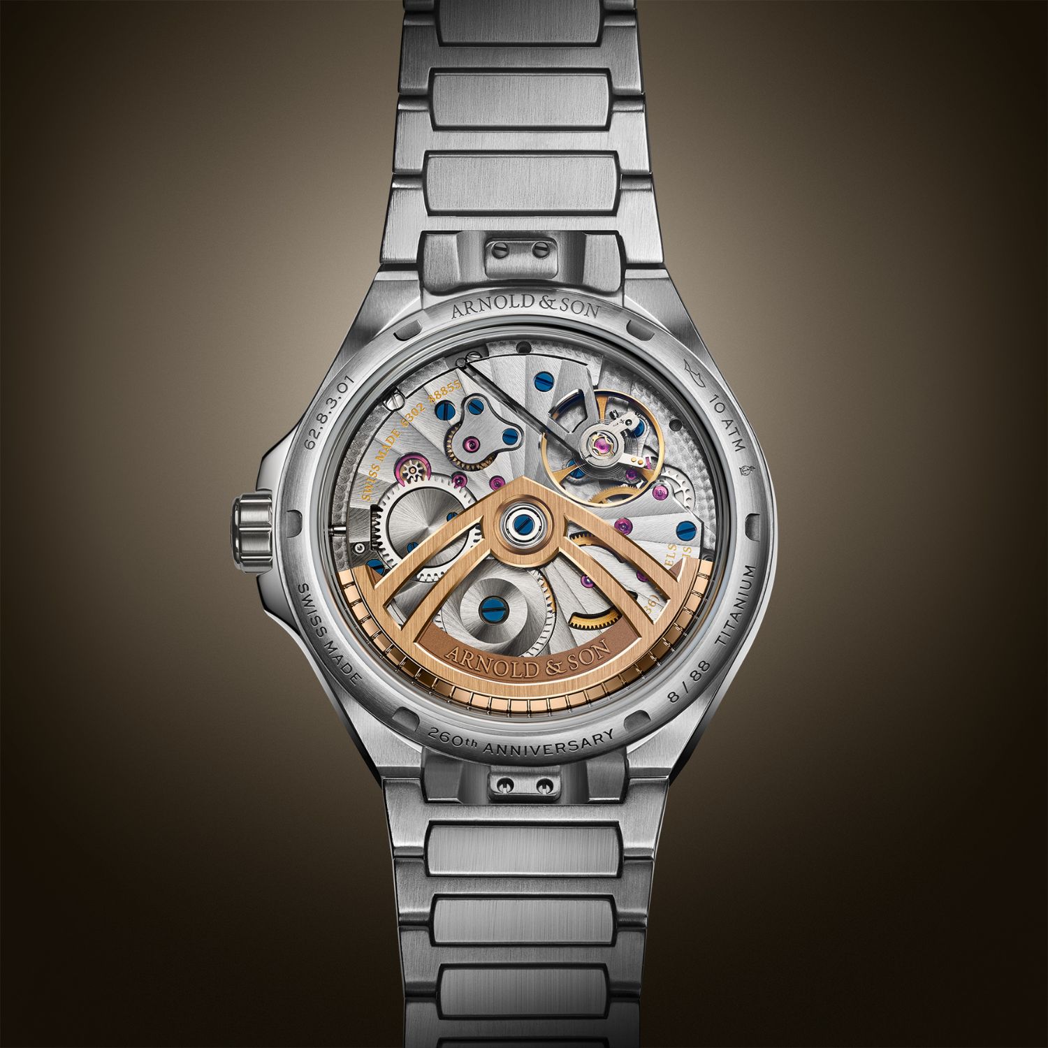 Longitude Titanium builds on the legacy of John Arnold, a pioneer of navigational precision, transforming his marine chronometers into an elegant modern sports watch. The titanium case, inspired by the lines of contemporary sailing yachts, together with the vertically arranged dial, creates an authentic nautical character.
