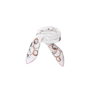 Ode to the Happy Spirit jewelry collection, this fuchsia silk twill scarf features gold and diamond rings of all different sizes, with hypnotizing charm. This small, elegant and radiant square is perfect for keeping your neck warm, brightening up an outfit and illuminating the complexion. You can let your imagination go and wear it however you want, around your neck, on your wrist, in your hair, or even tie it to a strap on your bag.