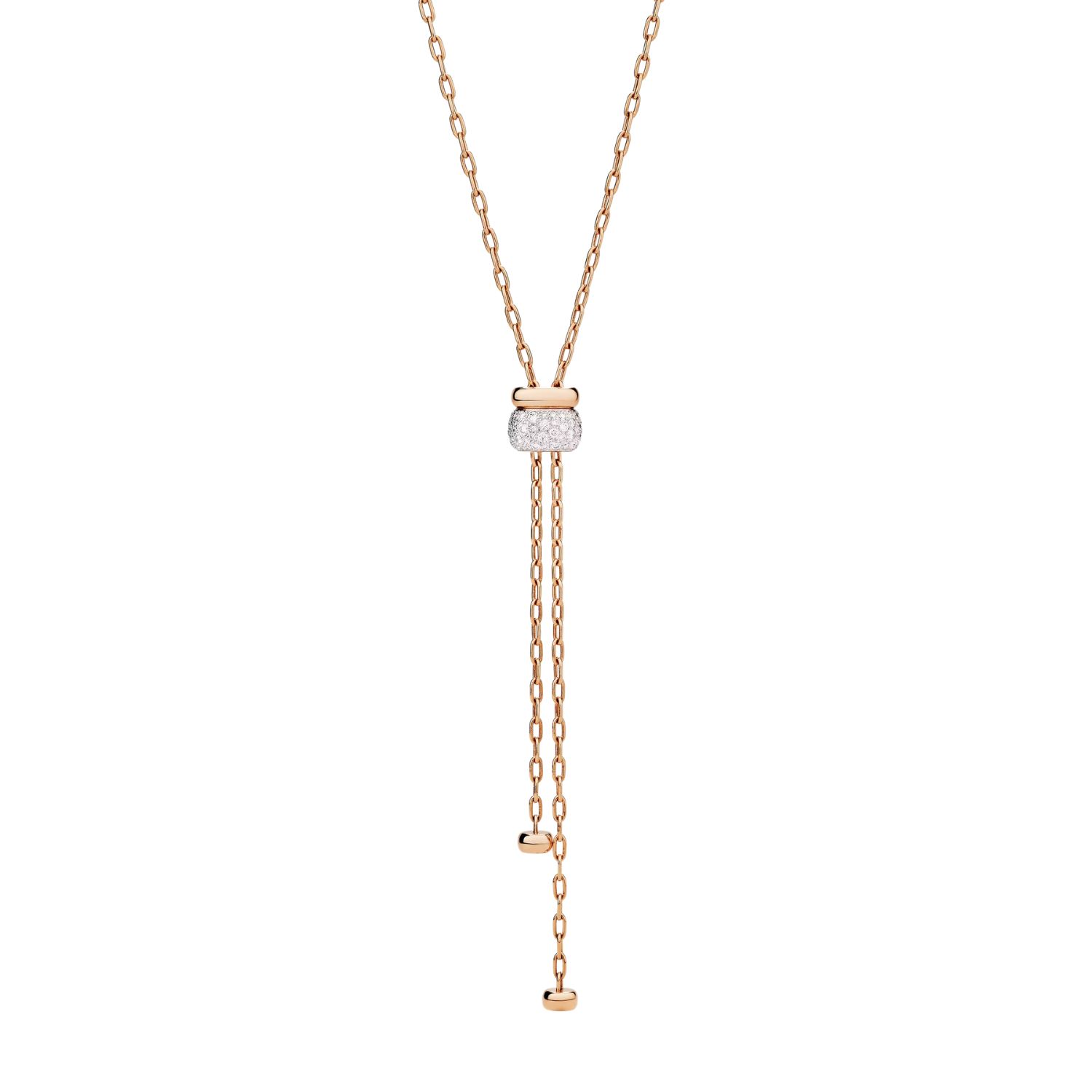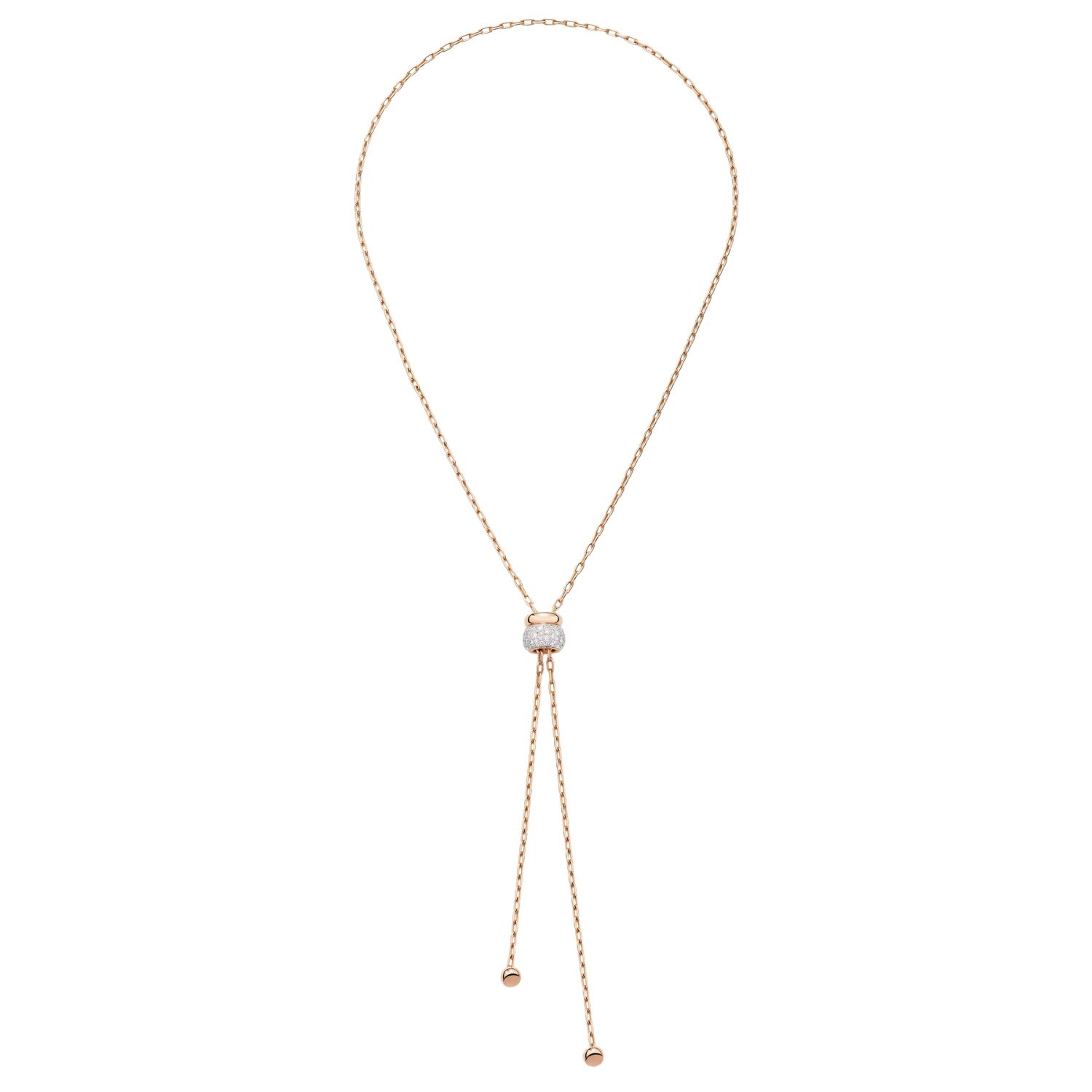 This rose gold necklace, adorned with radiant white diamonds, embodies modern luxury and a sense of individuality. The central motif, inspired by a pair of Iconica rings, creates a bold yet timeless accent. The sliding element allows for versatile styling, making it ideal for both special occasions and everyday wear. - PCC5001O7WHRDB000-75