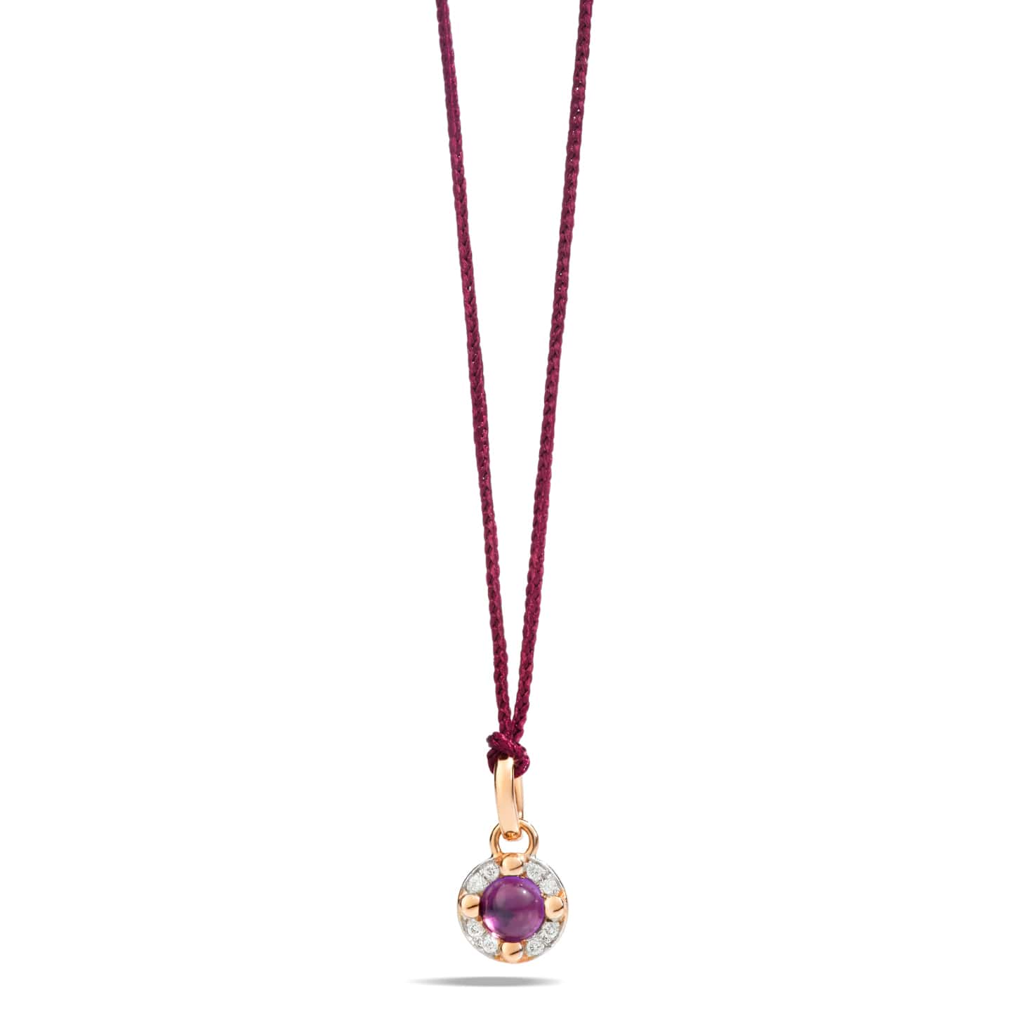 Pendant in 18k rose gold, 1 moonstone 0.42 ct, 8 diamonds 0.05 ct. Sleek and sensual, the new M’Ama non M’ama pendant crafts a gem for every emotion. A moonstone represents joy. Cord included.
