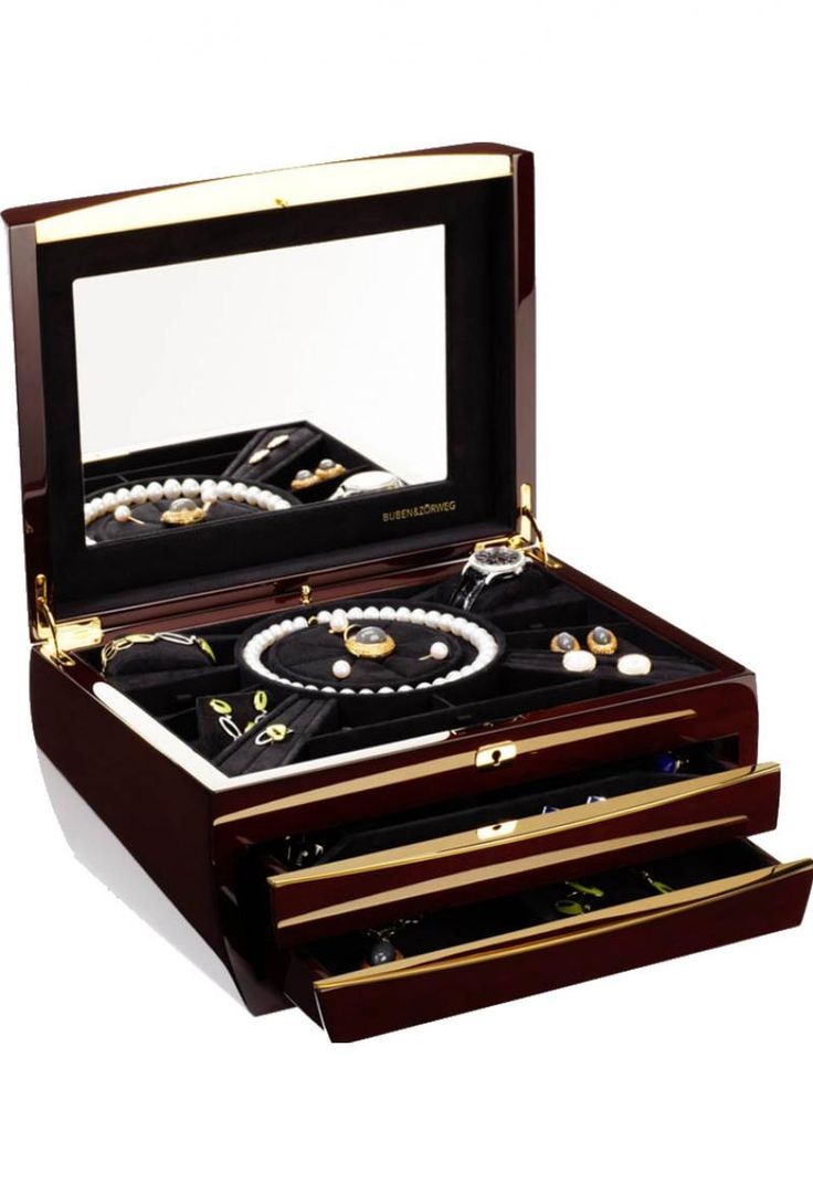 The elegant jewellery box with graceful shapes in a luxurious colour reliably hides all your precious jewels.