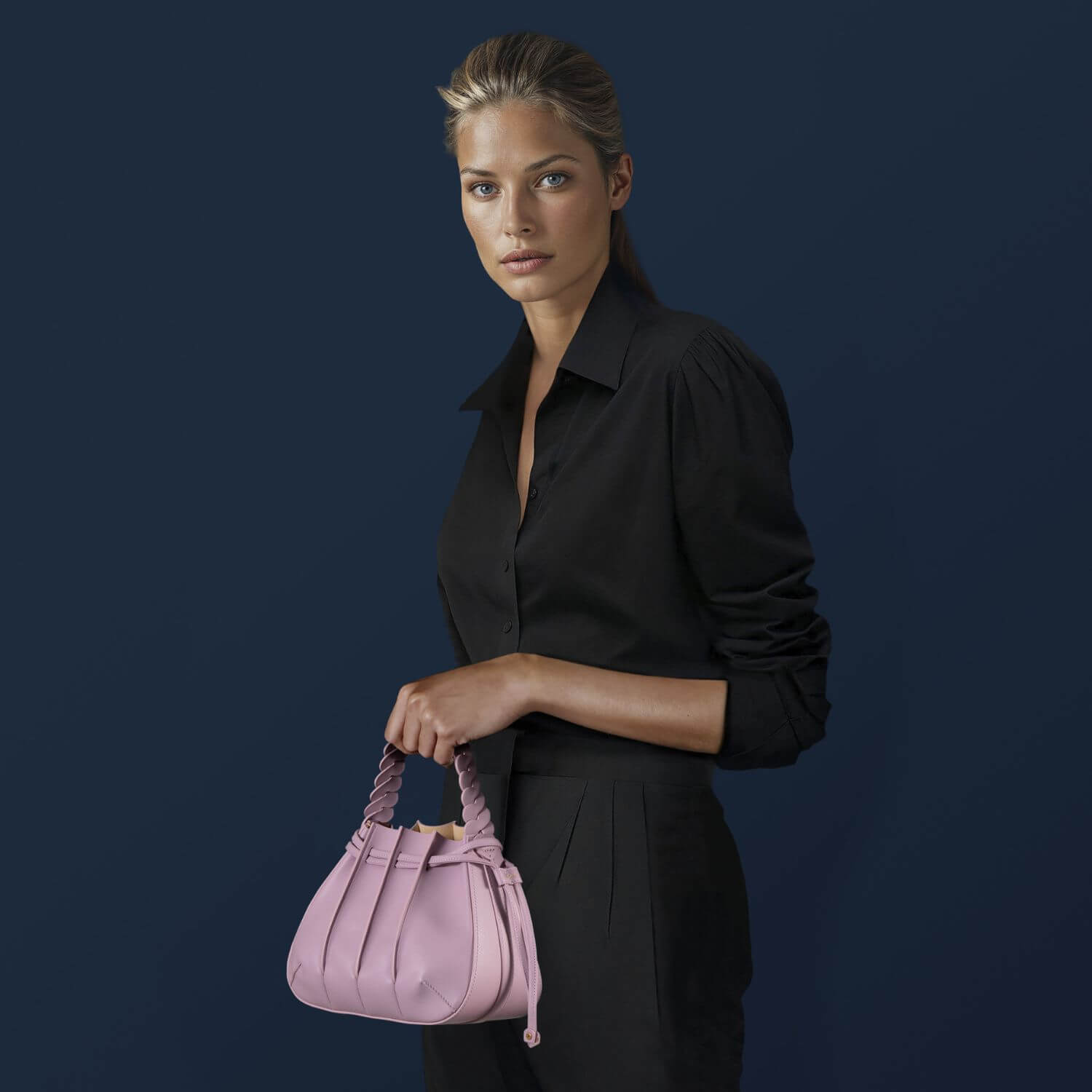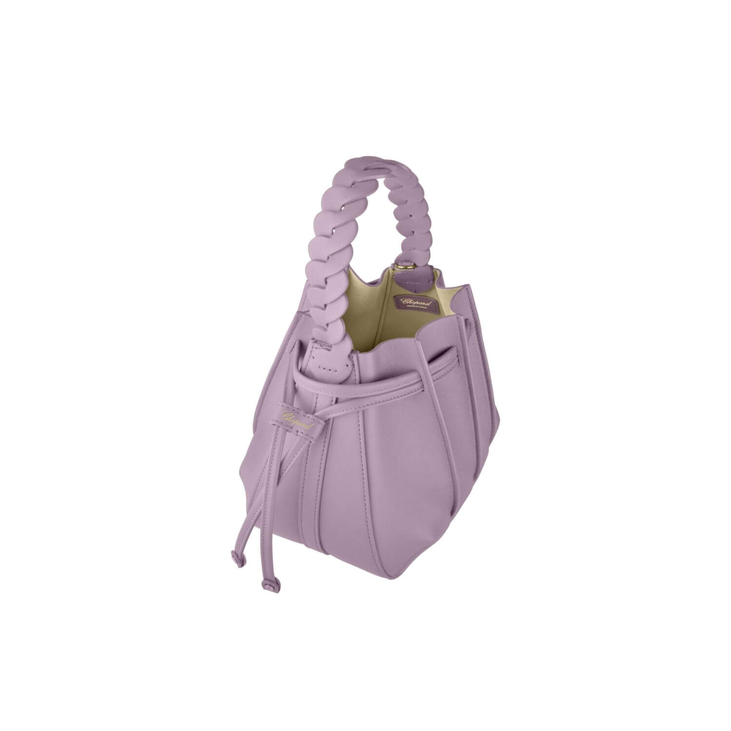 Ideálny spoločník pre aktívnu mestskú ženu – kabelka Gem Mini Bucket z jemnej teľacej kože v odtieni lila je mimoriadne ľahká a moderná, no zároveň s nádychom retro štýlu. Počas dňa si ju zamilujete nosiť na pleci vďaka širokému, odnímateľnému a nastaviteľnému ramienku z kože, ktoré dodáva praktickosť. Večer sa premení na šarmantný doplnok do ruky – vynikne pletené kožené ucho so srdiečkovým motívom, odkazujúcim na charakteristický rukopis značky Chopard. Jemný detail, ktorý dodáva celku pôvab a nádych glamour.