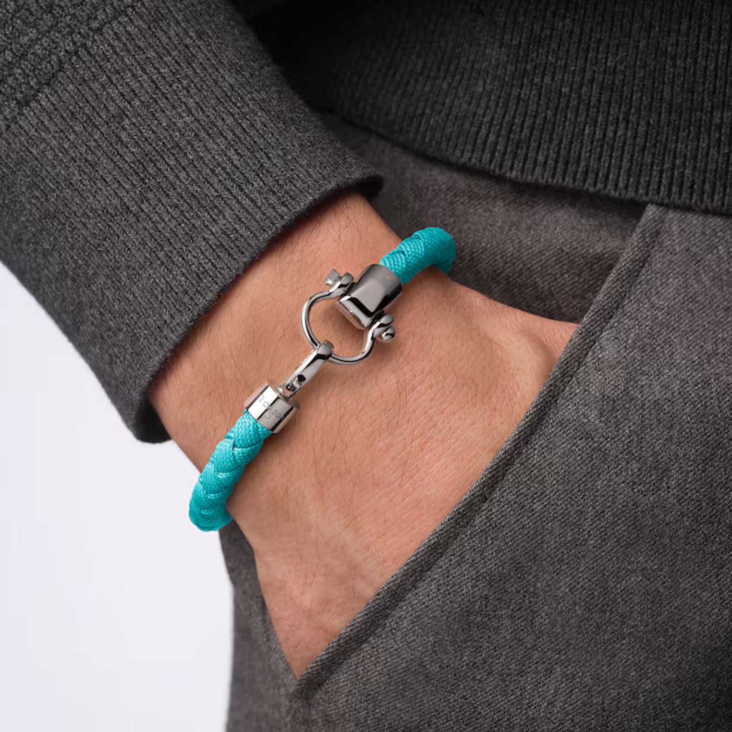 Náramok z nehrdzavejúcej ocele a pleteného nylonu spája eleganciu a komfort. Vytvorený pre neformálny vzhľad, je farebný, ľahký a pohodlný na každodenné nosenie.
