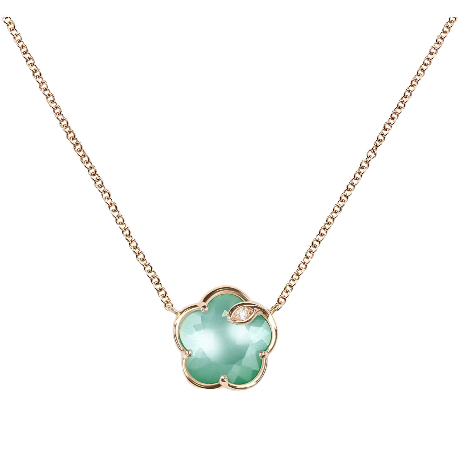 Pasquale Bruni Petit Jolie Značka Produkt Náhrdelník Kolekcia Petit Joli Materiál 18-karátové ružové zlato Drahokam biely diamant Polodrahokam mesačný kameň, zelený achát Modelové číslo 16790R Cena 1.880 € Stav skladom Mám záujem