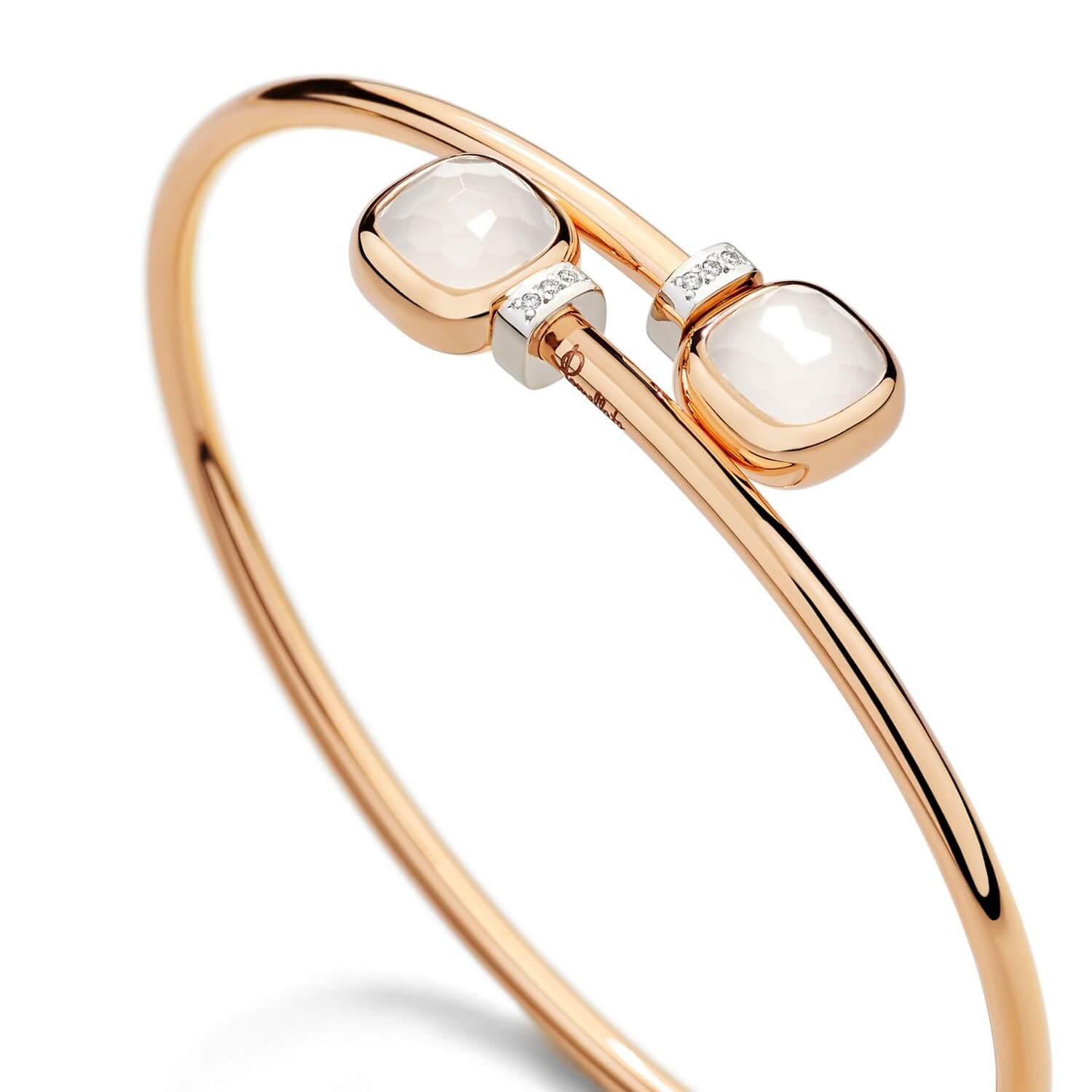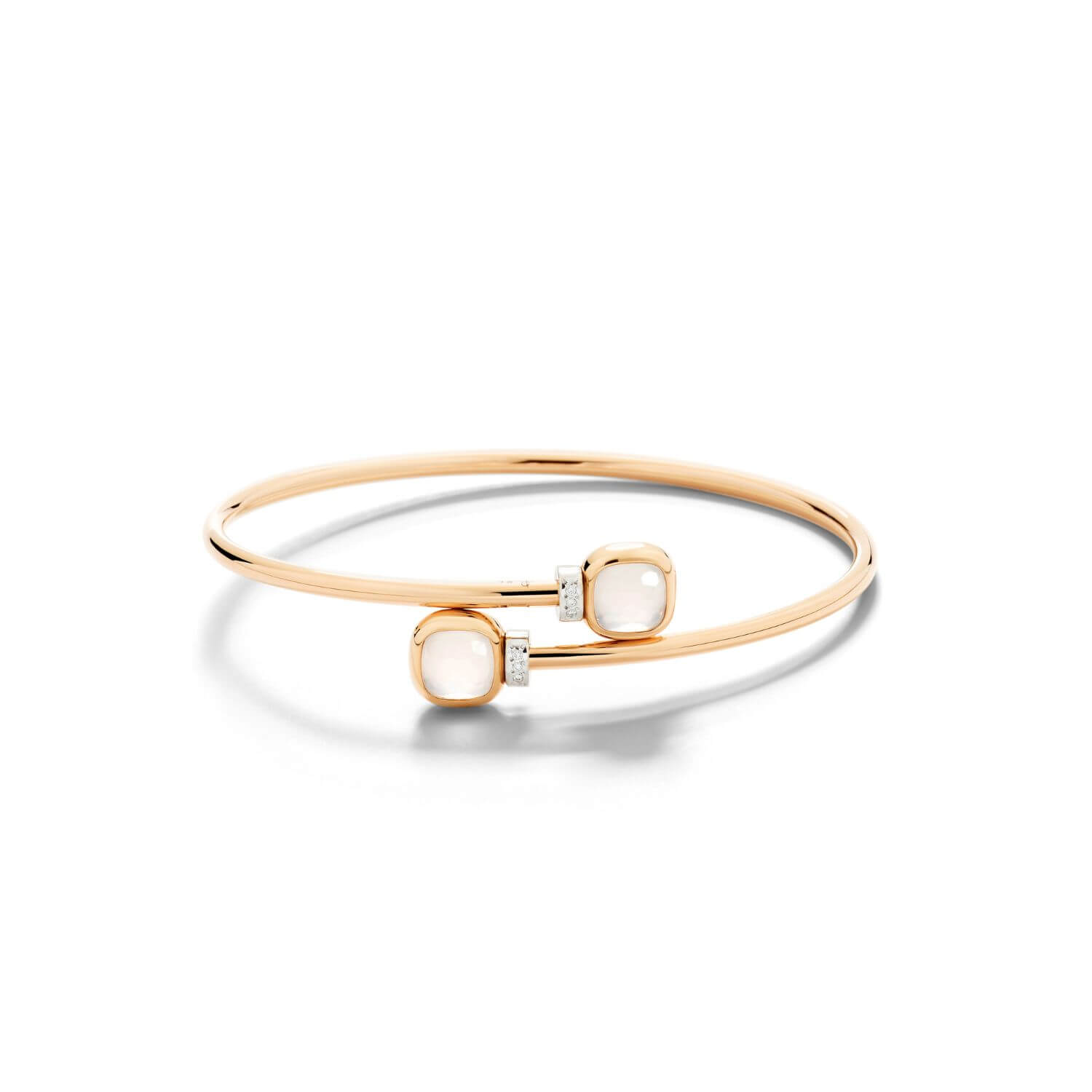Nová kolekcia Nudo Mini prináša vycibrenú interpretáciu – ikonický dizajn v menšej mierke, ideálnej na každodenné nosenie. Tento elegantný náramok Mini zdobia dva drahokamy svelomodrého topásu, ktoré zachytávajú esenciu vôd Stredomoria. Menší rozmer dodáva šperku ešte väčšiu všestrannosť, pričom si zachováva svoj výrazný charakter. Osadený v hrejivom ružovom zlate s detailmi z briliantov, kamene akoby voľne plávali – no v skutočnosti sú dokonale uchytené vďaka inovatívnemu remeslu Pomellato.