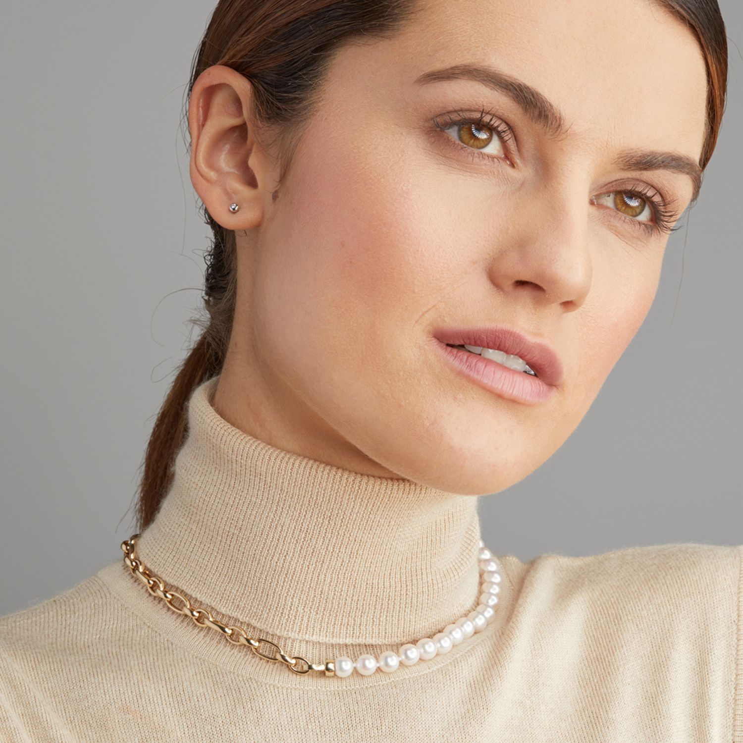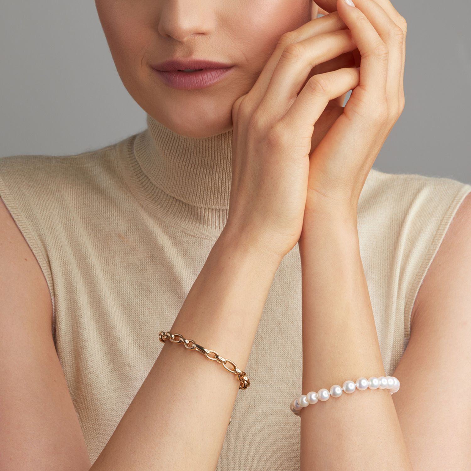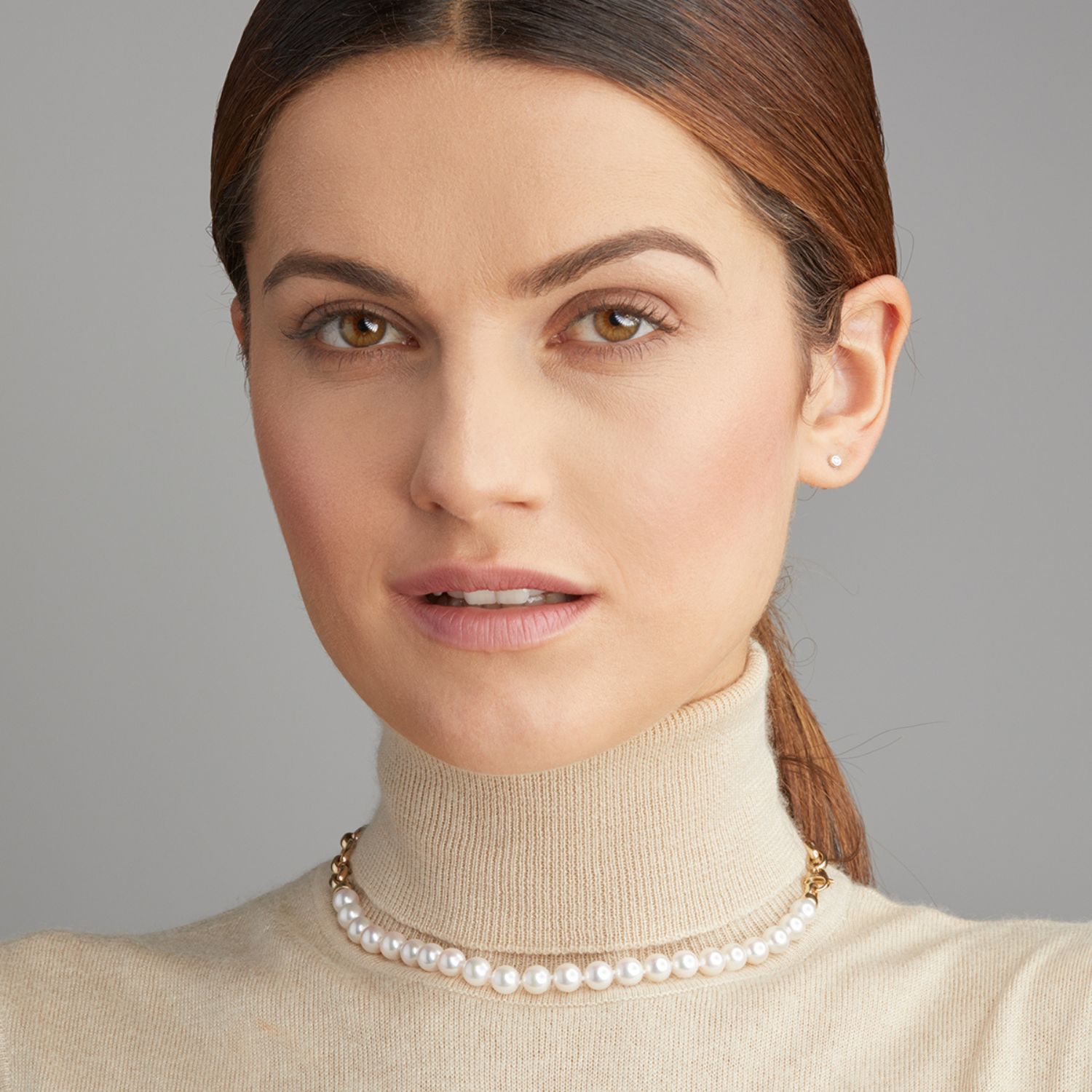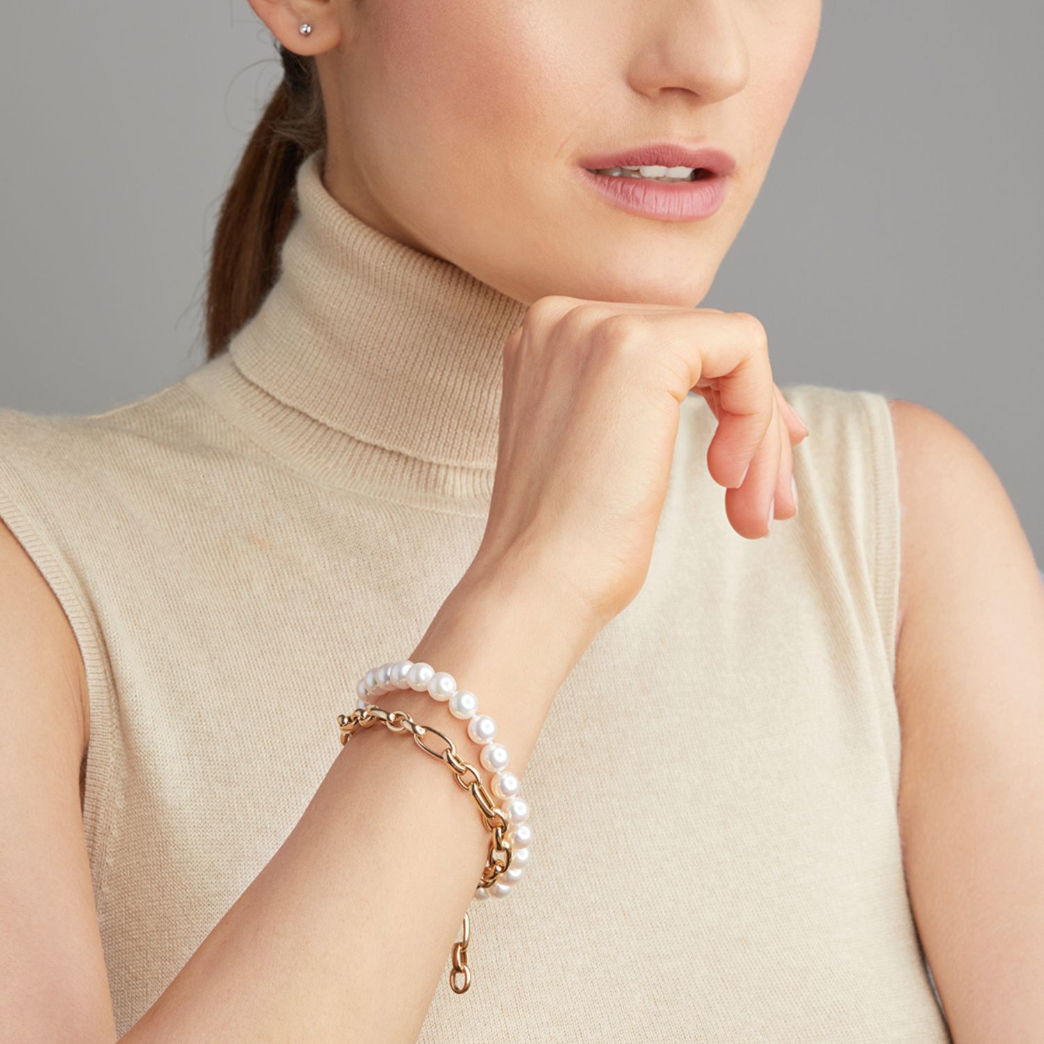 Mimoriadne všestranný perlový náhrdelník, pokiaľ ide o praktickosť. Tento šperk sa dá nosiť ako náhrdelník aj ako dva náramky – a vďaka karabínovým zapínaniam je to veľmi jednoduché. Premyslene navrhnutý a neporovnateľný z hľadiska kvality žltého zlata a perál Akoya, je dokonalým doplnkom každej šperkovej kolekcie.
